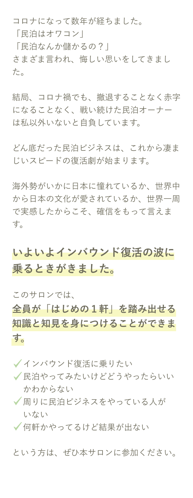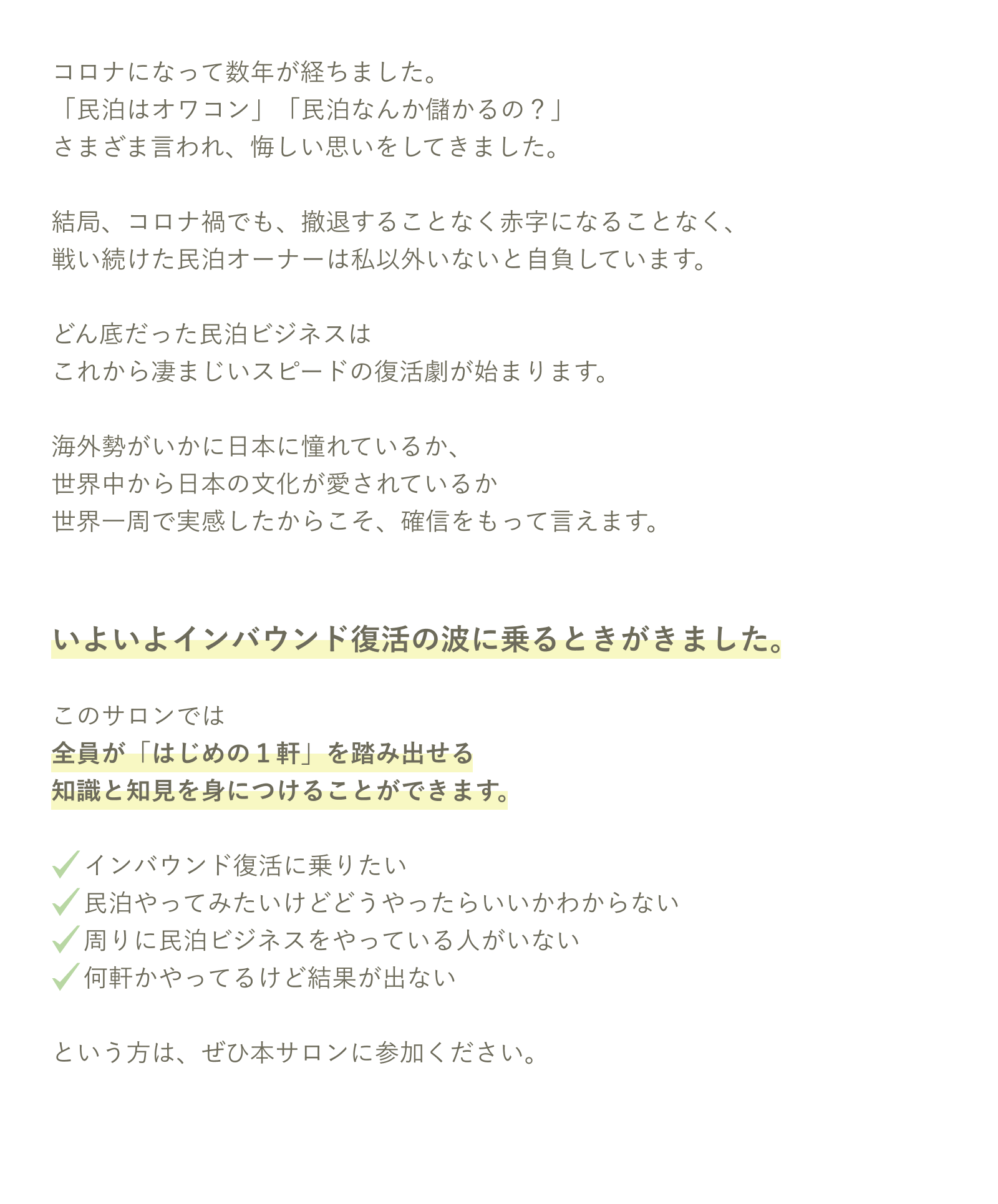 「令和の民泊サロン」では、下記のようなイベントを毎月定期的に行っています。
